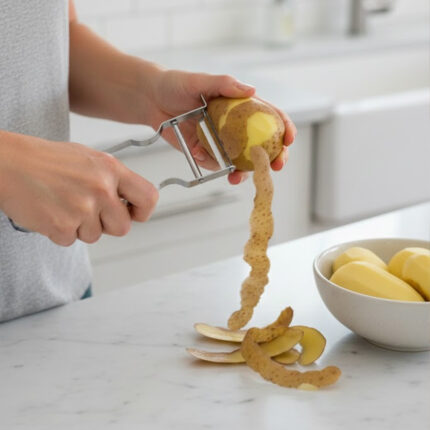 أداة مُخصصة لـ إزالة القشرة الرقيقة ديال الخضار و الفواكه، فـ الكوزينة. الطقم كايتكون من جوج ديال القشارات بـ أشكال