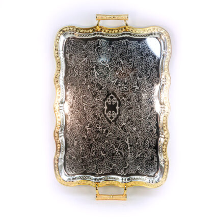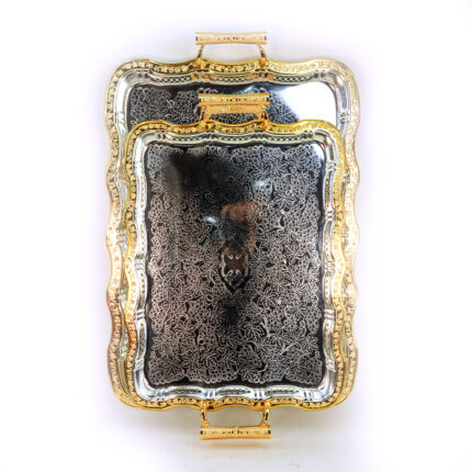 صواني الفضية بـ شكل مُتَمَوِّج و إطار ذهبي مُزخرف