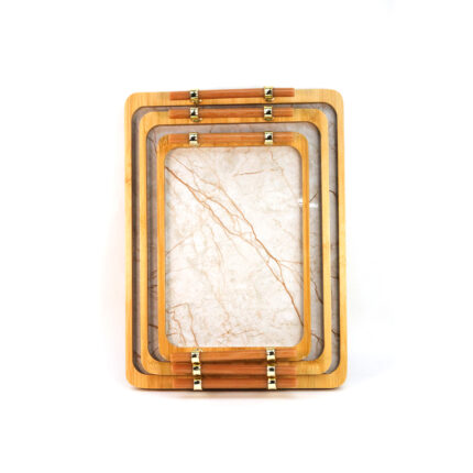 طقم ديال 3 بلاطوات مستطيلة من العود