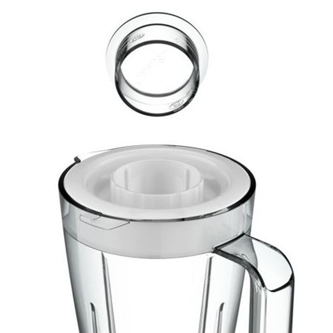 🍓 كاس القياس (Gobelet doseur): كايجي معاه كاس صغير مدمج في الغطاء باش تعبري الكميات الصغيرة بلا ما تحبسي الخلاط.
