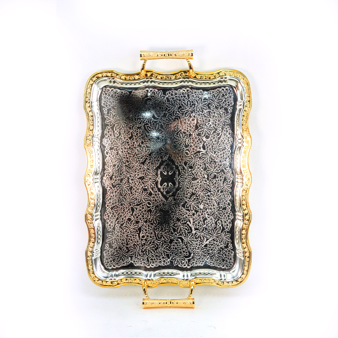 صواني الفضية بـ شكل مُتَمَوِّج و إطار ذهبي مُزخرف