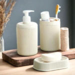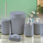 إيلا بغيتي تنظمي الحمام ديالك وتعطيه لمسة عصرية ومرتبة، طقم ALESTA هو الاختيار المثالي. بلون “بيج” أو الرمادي هادئ كايعطي إحساس بالراحة والنقاء، هاد الطقم كايجمع ليك كاع اللي كتحتاجي في بلاصة وحدة.