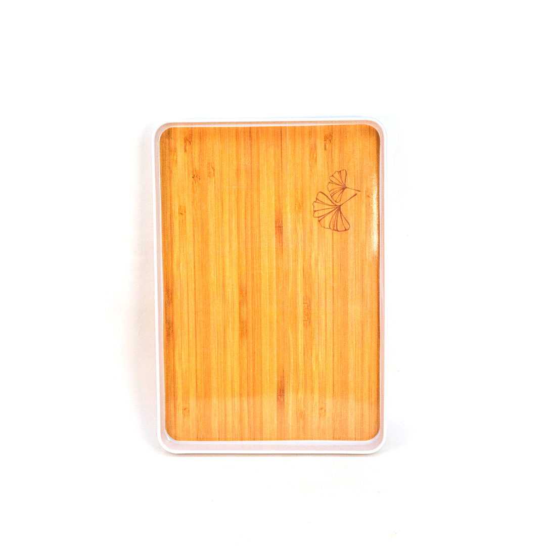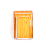 طقم فيه 3 ديال الصواني (البلاطوات)، وحدة كبيرة و وحدة متوسطة و وحدة صغيرة، و كايدخلو ف بعضياتهم باش يوفروا البلاصة. مصنوعين من مادة قاصحة (لاميني)، و الغطا ديالها فيه نقش ديال العود البني (محبوك). الطلاء ديالها لامع و سهل ف التنظيف. هي عملية بزاف لـ تقديم المشروبات و الوجبات فـ الإستعمال اليومي و كايصبروا على الصهد